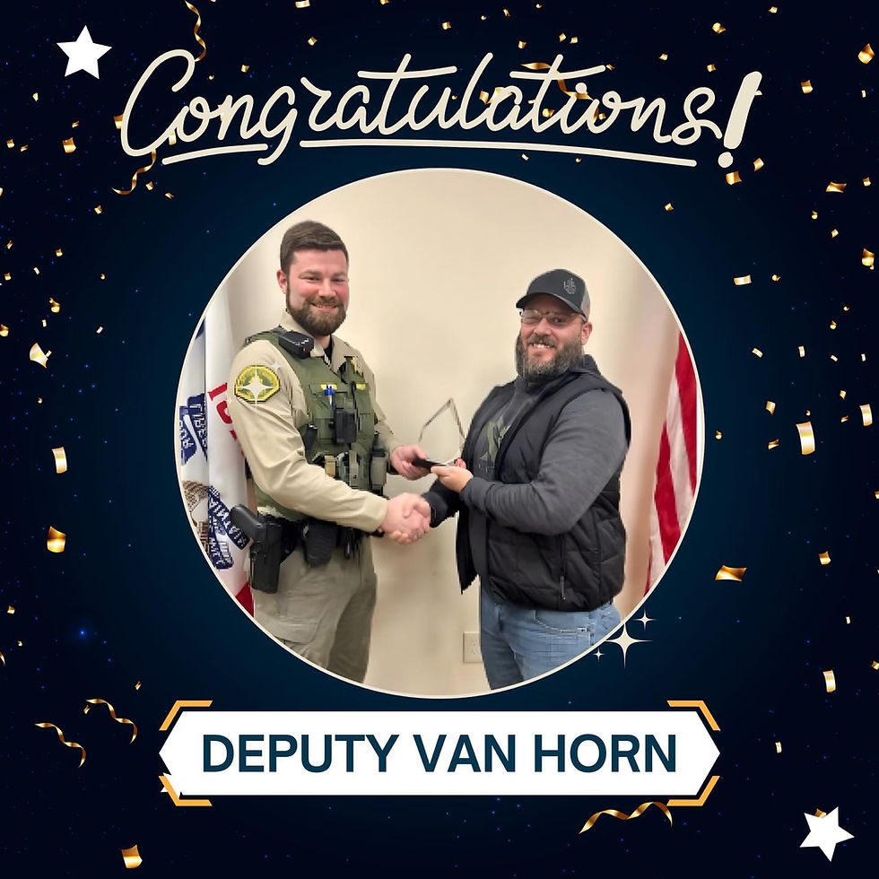 “On January 28th, 2026, the Clayton County Law Enforcement Association (CCLEA) held a business meeting/training which included the announcement of the 2025 Officer of the Year award. Police Officer Levi Keppler (Strawberry Point Police Department), Reserve Deputy/Officer Macey Barnhart (Clayton County Sheriff’s Office, Garnavillo Police Department, and Mar-Mac Police Department), and Deputy/Police Chief Eric Van Horn (Clayton County Sheriff’s Office and Garnavillo Police Department) were nominated by their peers for the award. The CCLEA members had the difficult task of selecting one of these individuals for the award. All three candidates were equally deserving of the award. Deputy/Police Chief Eric Vanhorn was chosen as the 2025 Officer of the Year. The nomination noted Eric’s leadership, compassion, selflessness, unwavering commitment and dedication which make him a role model for all officers to strive for. We would like to congratulate Eric for being selected as the 2025 Officer of the Year and Macey and Levi for their dedications and contributions.”